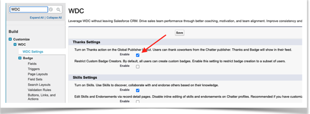 Enable the Thanks setting.