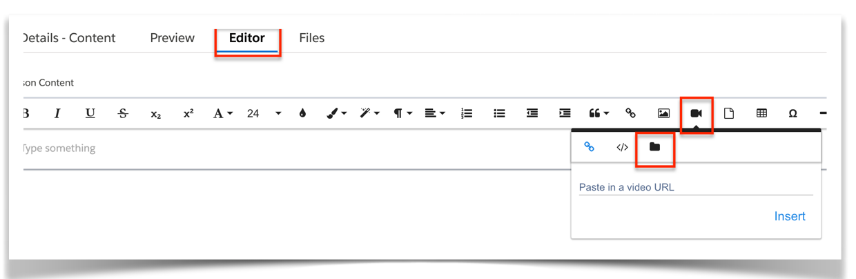 NOTE: If you have videos stored in YouTube or Vimeo, you can click on the First Icon "By URL" button to add the video URL information. There is no need to add it to the FILES tab.