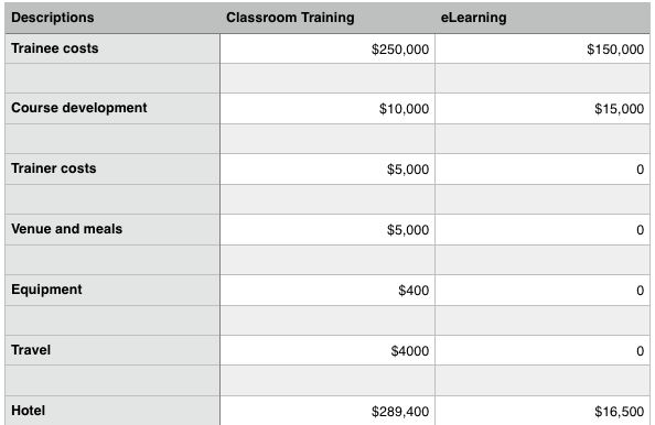 The following example provides a high level overview of calculating ROI, and they include only the tangible measurement areas. When you take into consideration some of the intangible suggestions listed above, then incorporating an LMS into your training program brings with it far greater rewards.